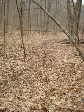 Our labors along this path have involved uncovering existing beauty: clearing debris, cutting small trees, removing fallen branches, and eliminating thorny underbrush. We have never planted anything—never mulched or watered, yet it has all the appeal, if not more, of our maintained garden areas. Each season brings new colors (mossy greens, cedar berry blues, lichen grays, fallen leaves of red and yellow); different feelings underfoot (crackling leaves, snow, soft mulched compost, bare soil); and seasonal sounds (winter silence, spring birds, summer hooting owls, turkeys gobbling in fall). In the winter, dormant trees allow views of fields, ridges and woods, giving the landscape a spacious feeling. Yet in summer, greenery brings a feeling of enclosure, creating a secluded haven. This "natural garden" was created with minimal human interference.