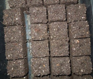 | Moistening the mix makes pressing the soil into compressed cubes easier. |